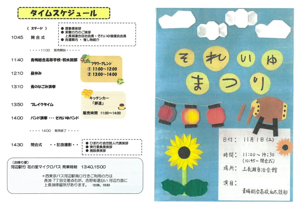 お知らせ それいゆ祭 開催のお知らせ 2025.10.30 当法人では次の通り、それいゆ祭を開催することとしましたのでご案内いたします。 日付: 2025年11月1日(土) 時間: 11:00~14:30 場所: 青梅市 上長淵自治会館 一覧にもどる