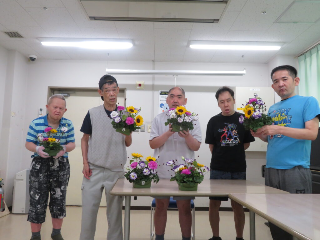 創作活動 2025年9月フラワーアレンジ教室 2025.09.18 花の里フラワーアレンジメント教室は、市内在住の具志堅先生をお迎えし開催しています。具志堅先生はフレンチ、ドイツスタイルを主流としておられます。 今月の花材 ひまわり(黄) カーネーション(濃ピンク) トルコキキョウ ワレモコウ ポリシャス 一覧にもどる