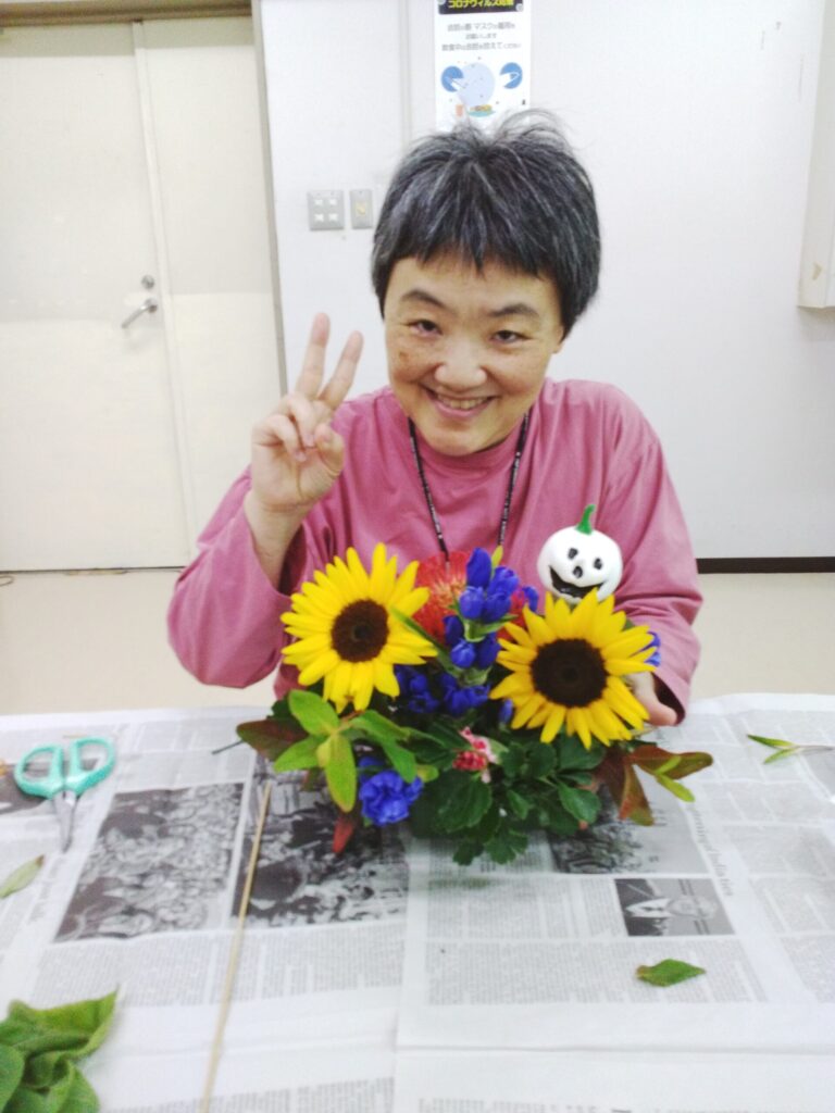 創作活動 2025年10月フラワーアレンジ教室 2025.10.09 花の里フラワーアレンジメント教室は、市内在住の具志堅先生をお迎えし開催しています。具志堅先生はフレンチ、ドイツスタイルを主流としておられます。 今月の花材 ひまわり リンドウ ピンクッション スプレーカーネーション ヒペリカム(葉) ポリシャス(葉) 一覧にもどる