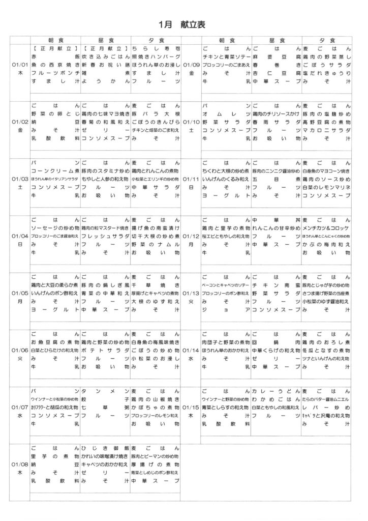 7日の昼食には七草粥を提供して、お正月で疲れた胃を休ませたいと思います。