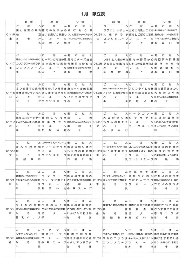 献立表
